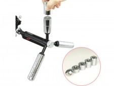 対応カメラネジは1/4-20UNC、外形寸法は、約W255×H370mm(最大数の重り搭載時)、重量1.42kg(同)。筐体はスチール製で、重りを三脚にすればスタンドとしても使用できる。