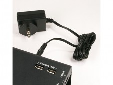 本体にはUSBハブ2ポートに加え、充電用USB 2ポート(BC1.2 Charging)も装備。付属の専用ACアダプタを使えば、スマートフォン等が充電できる。