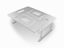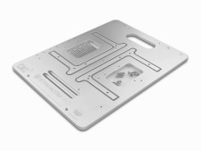 厚さ8mm厚のアルミニウム板で構成され、持ち運び時には足やネジ類を収納しコンパクトに持ち運びが可能。フォームファクタはATX、グラフィックスカードは4枚まで搭載でき、極冷用のオーバークロック升を装着することもできる。