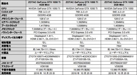 10月25日22:00販売が解禁された、NVIDIA GeForce GTX 1050 Ti / 1050搭載グラフィックスカードがZOTACから。