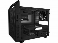 冷却ファンは、フロント140 / 120mm×1(オプション)、リア120mm×1(標準)で、フロントパネルには通気性に優れるメッシュパネルを採用。ドライブベイレイアウトは、5.25インチオープンベイ×1、3.5インチオープンベイ×1、3.5インチシャドウベイ×2、2.5インチシャドウベイ×3、拡張スロットは4段で、グラフィックスカードは340mmまで対応する。