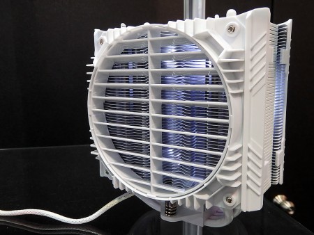 起動時にファンを約10秒間逆回転させ、ファンのホコリを除去する「DFR」(Dust Free Rotation)テクノロジーに対応するサイドフローCPUクーラー。カラーはブラックとホワイトの2色がラインナップ。