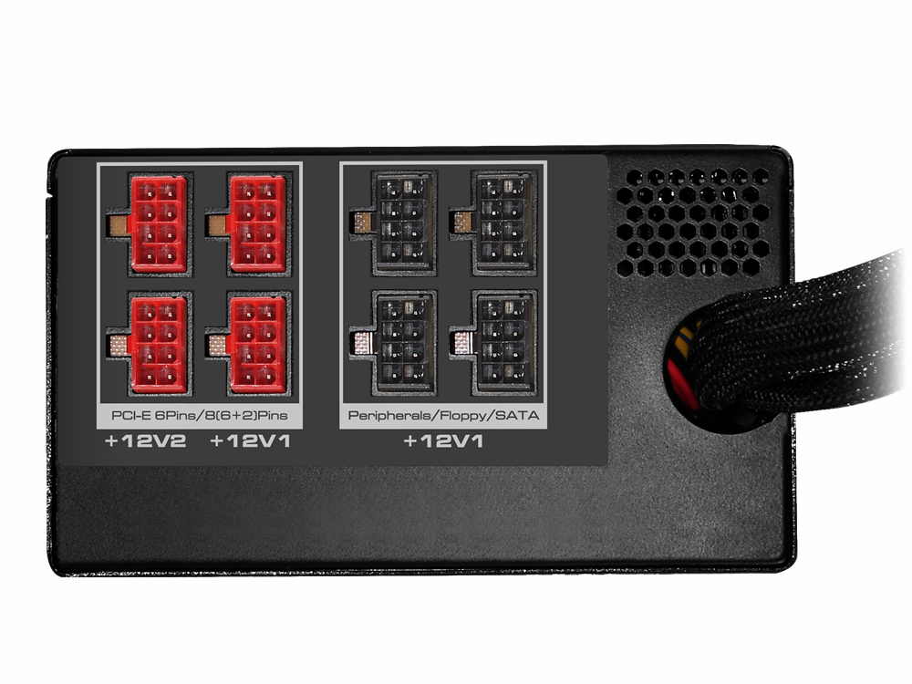 | +12V出力はデュアルレーン仕様。レーンあたり600Wモデルは最大40A、800Wモデルは最大50Aまで対応する |