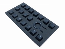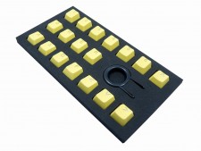 ABS樹脂のキーキャップ表面をラバーでコーティング。さらに上面には、銃のグリップなどに採用されるすべり止めのチェッカリング加工を施した。発汗などによるキー滑りや誤操作を防止する効果が期待できる。また、ラバーとのダブルインジェクションによる透過型キャップのため、イルミネーションキーボードの外観を損なうことなく換装可能だ。