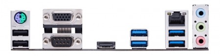バックパネルインターフェイスはUSB3.0×4、USB2.0×2、PS/2×1、シリアルポート×1、オーディオ端子×3、ギガビットLAN×1、ディスプレイ出力はHDMI×1、D-Sub×1の2系統を備える。