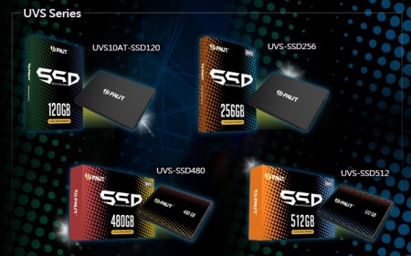 「UVS Series」は、TLC NANDフラッシュを搭載するコストパフォーマンスモデル。容量ラインナップは120GB、256GB、480GB、512GBの4種で、256GB以上のモデルではメモリセルを積層させた3D NANDを採用する。