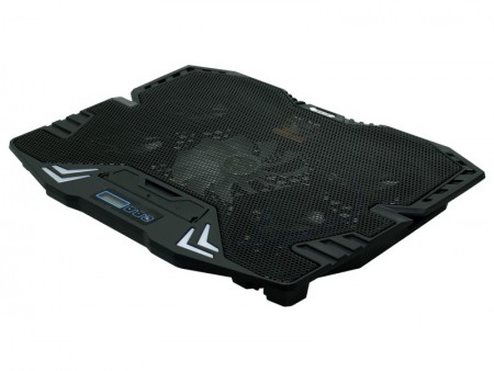 5基のLED内蔵ファンを搭載させた、角度調整可能なノートPC用クーラー。11.6~15.6インチまでのノートPCまでに対応する。