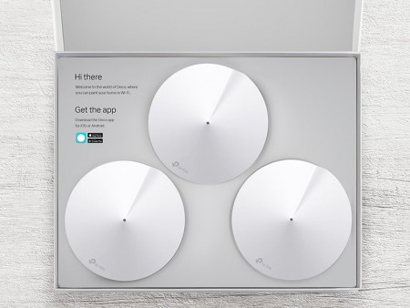 3台の独立した無線LANルーターユニットを宅内に設置することで、高速で安定したWi-Fiがすべての部屋に行き届くというもの。AndroidおよびiOS用アプリが用意され、手軽で簡単に設定ができる。